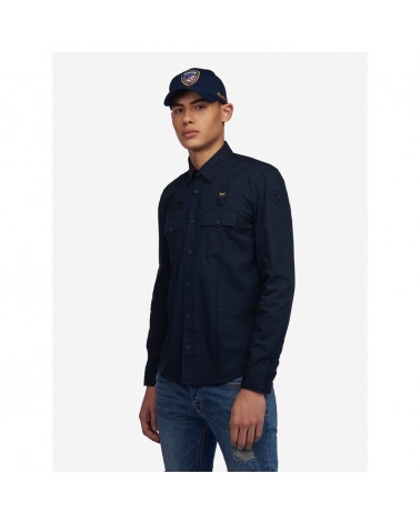 Blauer camicia uomo popeline Stretch