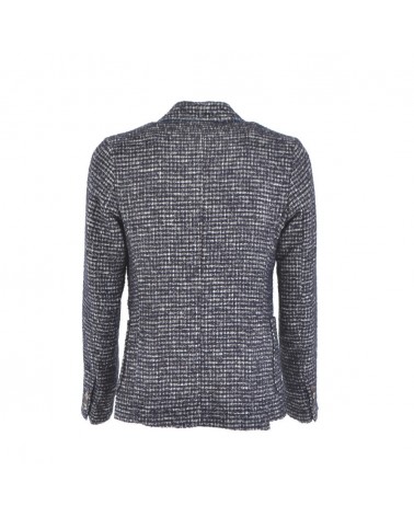 Giacca Bob monopetto in fantasia a quadretti, con revers classici e tasche a toppa.