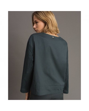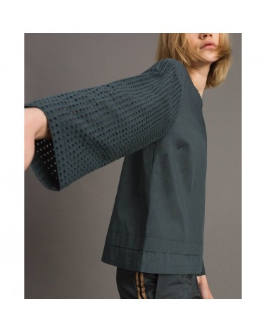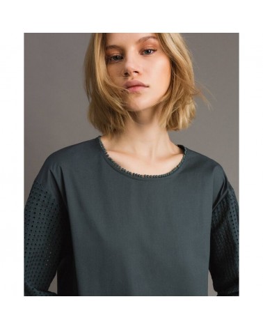 Twinset blusa in popeline con ricamo sangallo