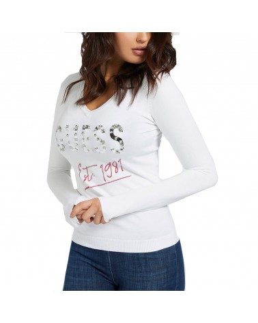 Guess maglia donna con scollo a V e logo sul petto